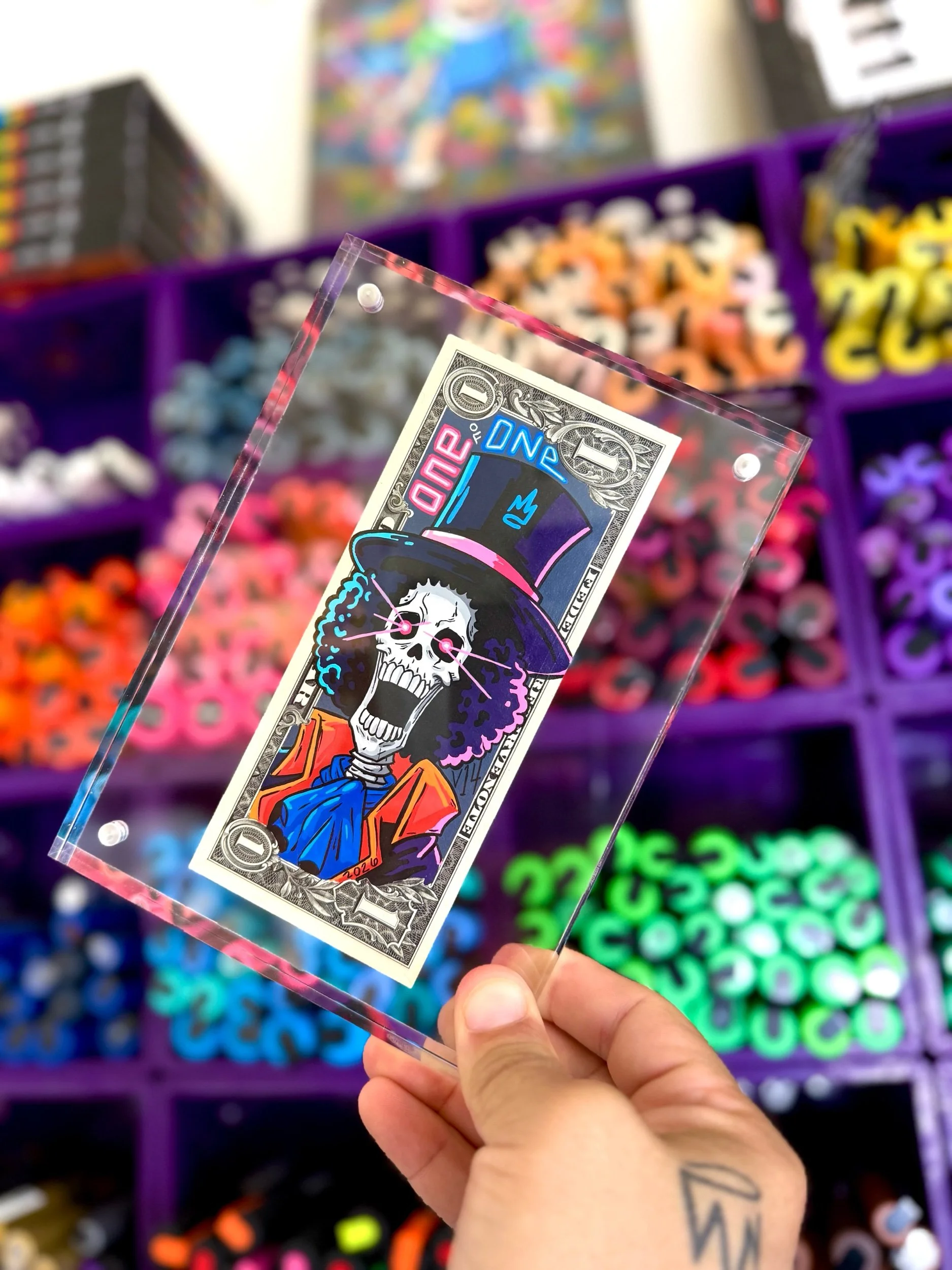 RMD $ Art Drop V14 One Piece › V14 Brook The Soul King $1 bill 1/1 Image 1 of 2 Image 2 of 2 V14 Brook The Soul King $1 bill 1/1 $150.00 Sold Out Sold Out Added! Reviews Reviewer Name Review Date Star Rating Description Posted on Etsy Product Show More